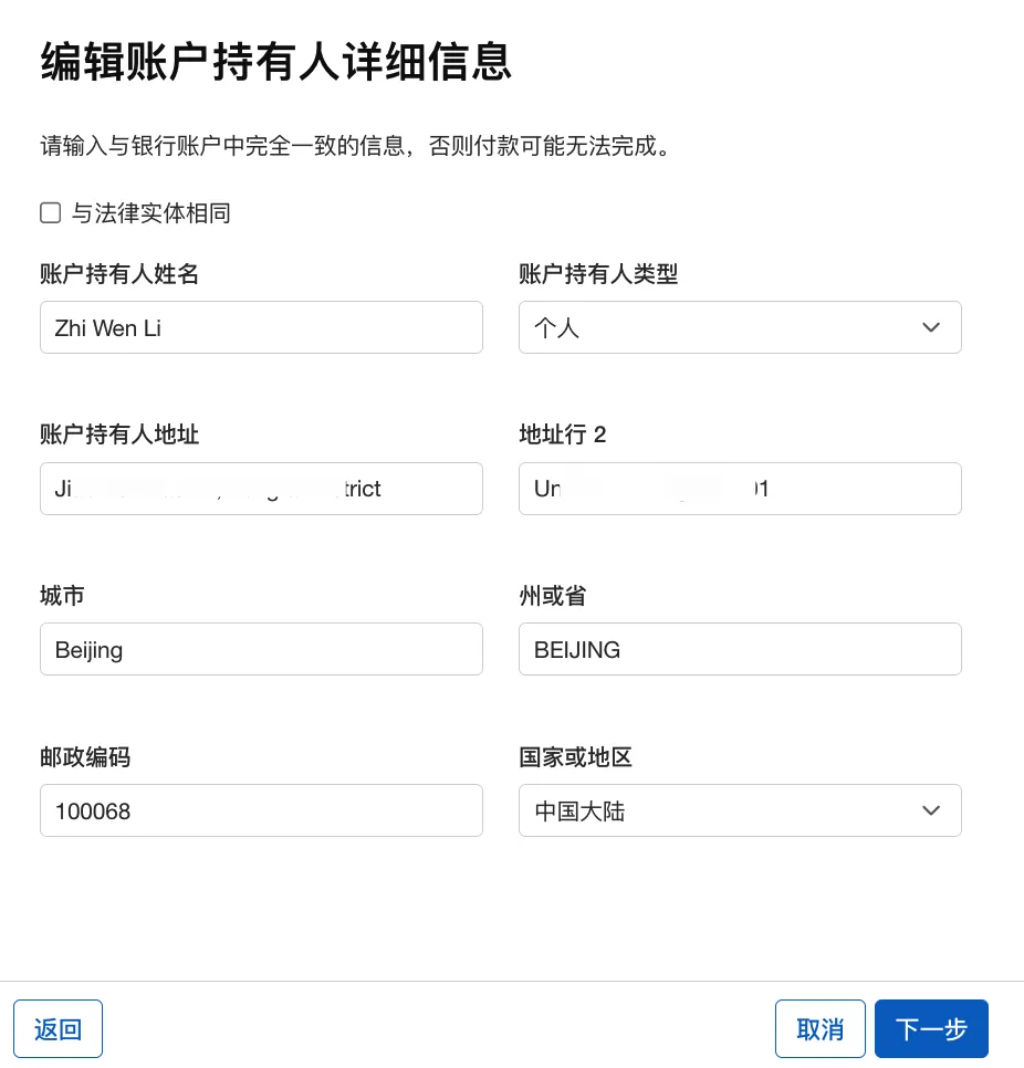 第3步:登记银行账号信息