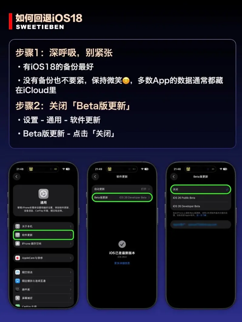 说到底还是设备在谁手里这个事,手机跟个人生活捆得紧,通讯支付导航拍照都在上面,一旦装到一个体验不理想的版本,可能要折腾好几天,官方要是给一张安全网,回去一步,心里就踏实不少。