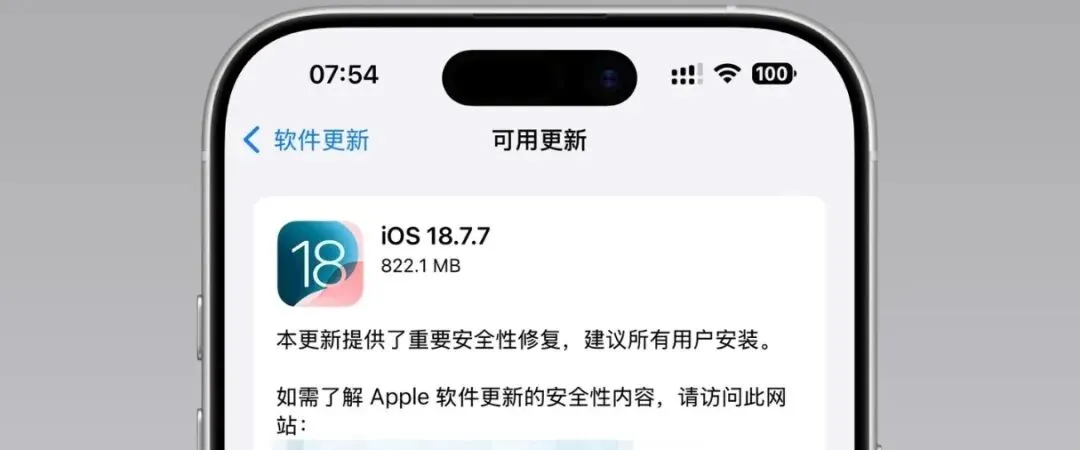 上周苹果就向旧系统的 iPhone 发出系统提醒,当前版本存在被攻击风险,鼓励用户升级,所以目前未升级到 iOS 26 的用户请赶紧更新至 iOS 18.7.7 !