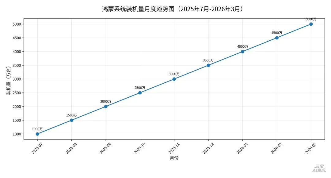 生态底座:该“5000万+”指搭载新版本系统的活跃设备,是支撑鸿蒙原生应用(超7.5万款)和开发者(超1000万)的核心底座。