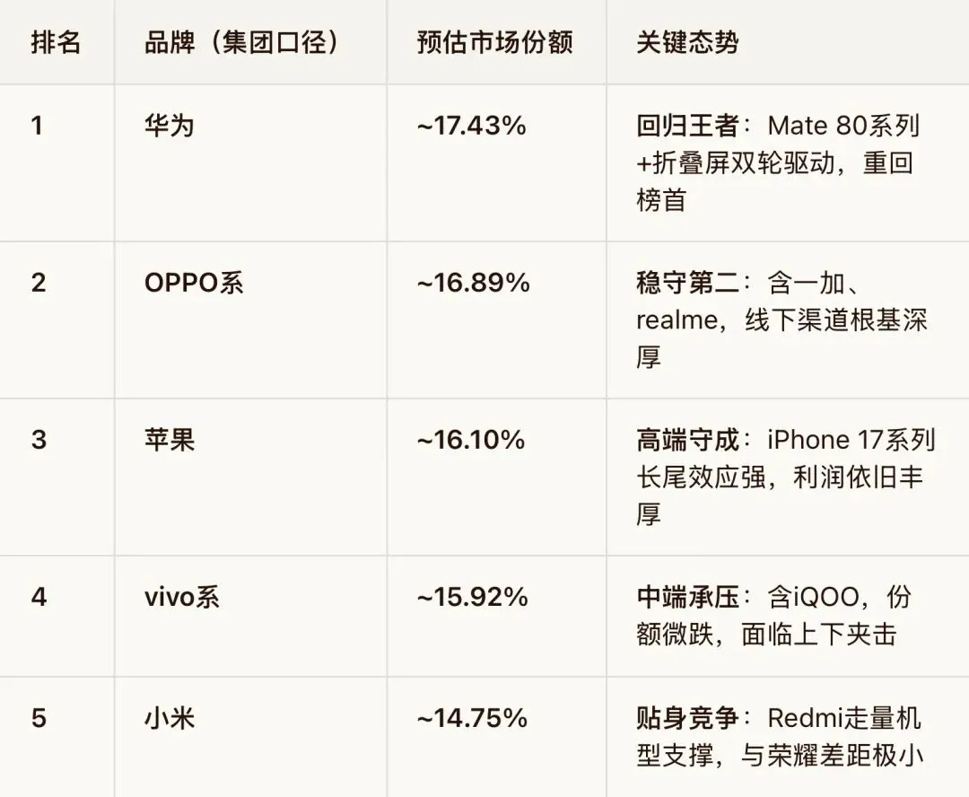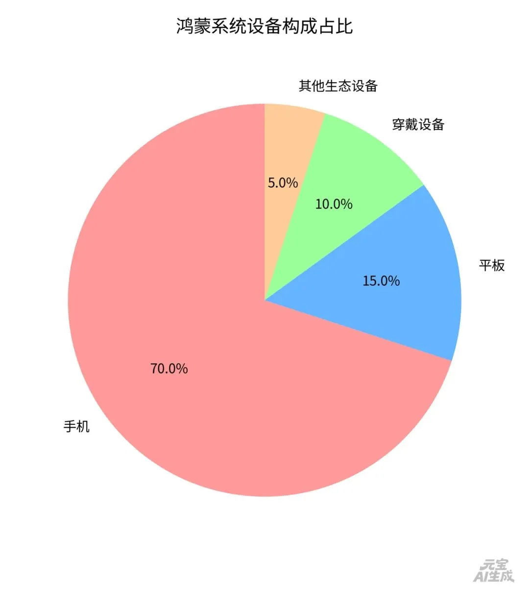 设备构成:手机是绝对主力。第三方分析指出,手机端占比约70%,其余为平板、穿戴及鸿蒙智联生态设备。
