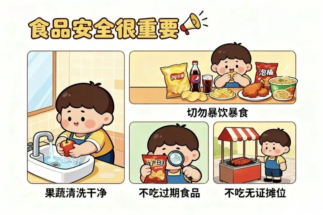 1.讲究饮食卫生,严把“进口”关,不购买或食用“三无”食品、过期变质的食品,食用水果应清洗、削皮,饭前便后要洗手,防止病从口入