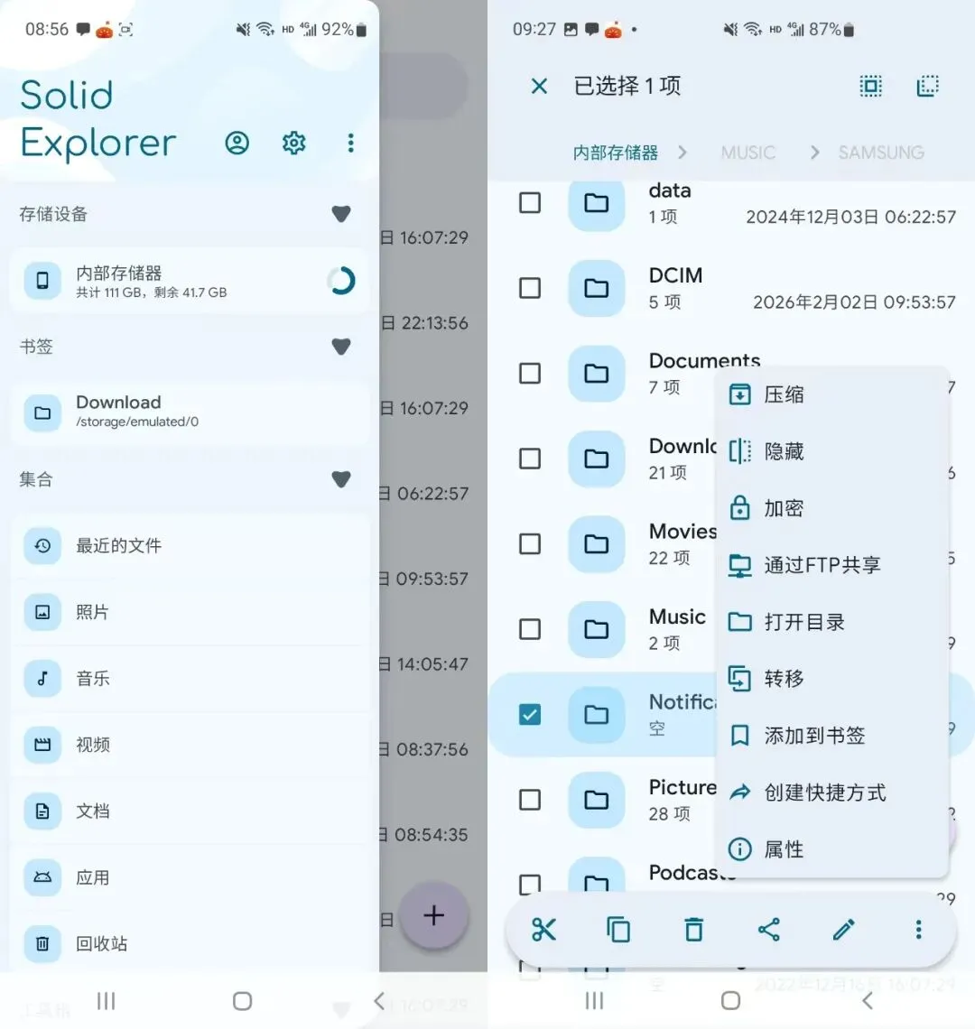 平时用安卓机大家总是会发现找一些下载文件非常麻烦,系统自带的文件管理器都非常难用。而在安卓生态里拥有许多,比系统自带好用太多的文件管理器了,轻松帮助你高效、优雅地管理文件!如 Solid Explorer——文件管理工具,从图片、视频到音乐、文档、压缩文件、应用,都能轻松查看和管理。它不仅外观精致,功能更是强大到让人惊叹,无论是本地文件还是云服务管理,它都能轻松胜任,堪称文件管理界的“全能选手”使用体验