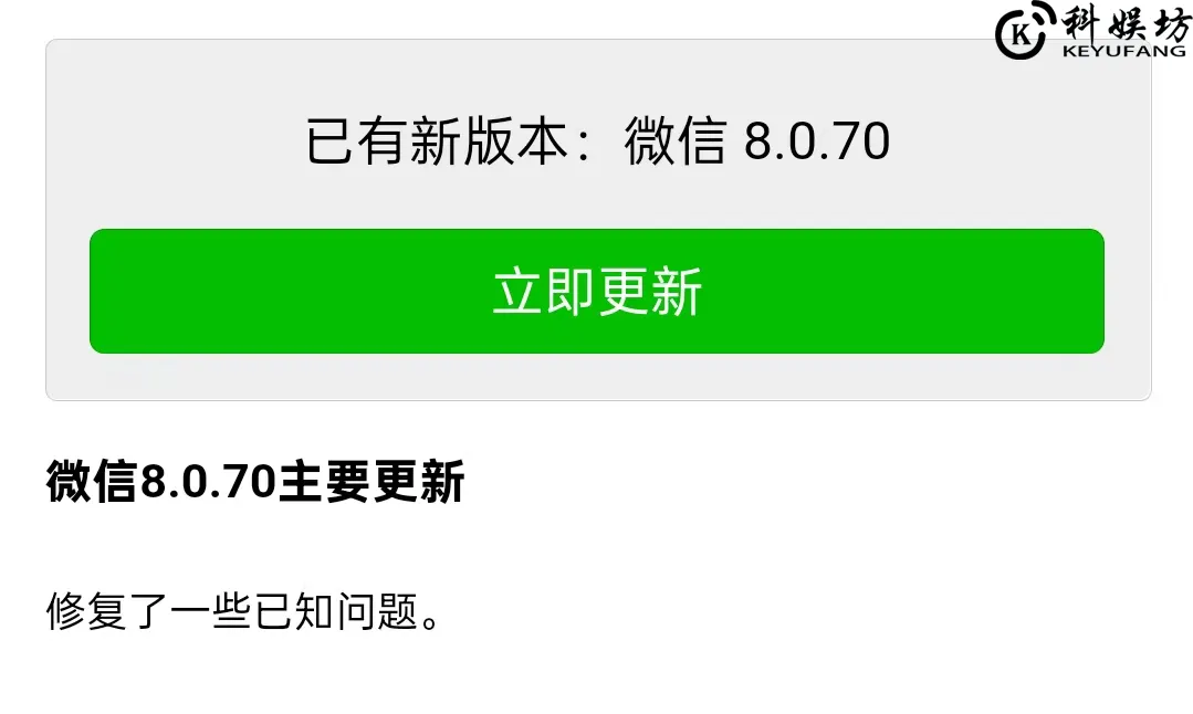 最近安卓微信又更新了,这次更新到8.0.70版本,更新日志依然显示的是解决了一些已知问题。但是科娱坊发现微信还是有个变化的,更新后的微信新增了一个【聊天界面中的新消息通知】的设置按钮具体位置在微信我→设置→通知→聊天界面中的新消息通知该功能主要就是,你可以自由选择开启或关闭当前打开聊天界面的提醒声音或震动。在之前如果你打开好友的聊天界面时,有新消息它是不会提示的,经常等了半天才发现原来消息早已经回了。现在打开提示之后,新消息在当前聊天界面也会提示,再不会错过消息了。另外安卓8.0.70版本微信也在灰度测试图片/视频合并发送和显示功能、“自聊”可撤回功能、未读消息弹窗功能,部分用户已经可以体验。
