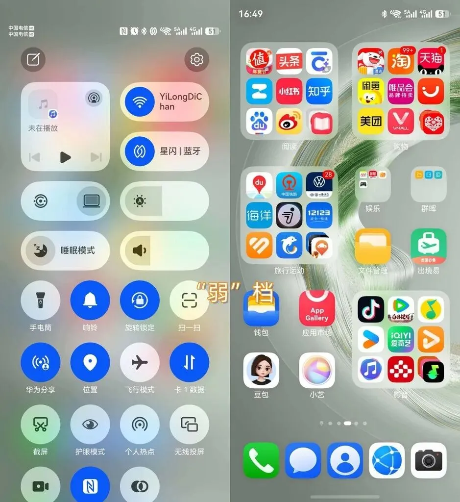 鸿蒙的“沉浸光感”共有三档可调,“强”档光感效果最为明显,界面显示晶莹剔透,不过会比较耗电,影响续航。“均衡”档,效果与续航都比较适中,比较适合日常使用。“弱”档基本就没什么光感效果了,也就是常规模式了,对续航完全没有影响。附图展示了三种档位的效果,你最喜欢哪一个呢?