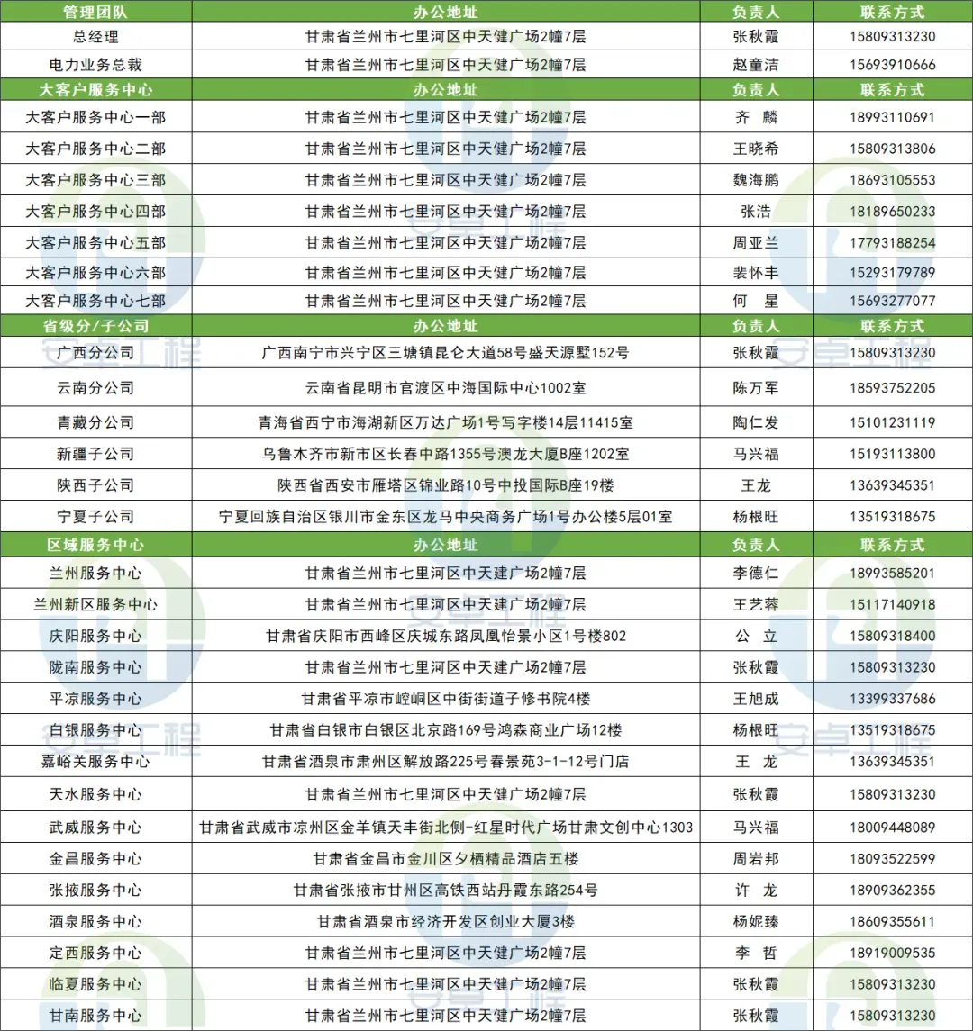 在全国业务布局方面,安卓工程的服务网络已覆盖全国18个省份。 公司下设云南、广西、青海、新疆、宁夏、陕西等省级分公司,并在甘肃省内布局兰州、兰州新区、庆阳、陇南、平凉、白银、嘉峪关、天水、武威、金昌、张掖、酒泉、定西、临夏、甘南等15个区域服务中心,形成“省级分公司+区域服务中心+大客户服务中心”的立体化服务架构。凭借这一覆盖广泛、响应及时的服务网络,安卓工程能够为储能客户提供跨区域、标准化的技术咨询服务,有力支撑储能项目在全国范围内的快速落地。