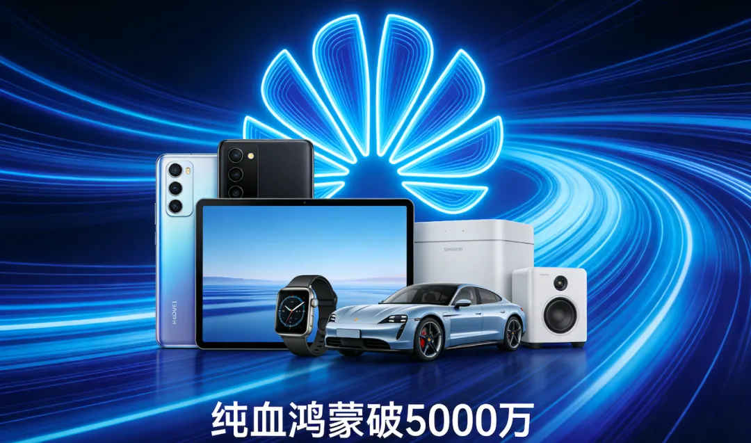 从设备构成来看,手机作为核心载体贡献了70% 的份额(约 3500 万台),Mate、Pura 系列成为主力机型;剩余 30%(约 1500 万台)覆盖平板、手表、智慧屏、车机、IoT 设备等全场景终端,华为 “1+8+N” 战略全面落地,鸿蒙不再只是手机系统,而是真正打通人车家的智能生态中枢。5000 万,是操作系统生态的 “生死线”,这一数字的突破,意味着鸿蒙的用户、开发者、应用已形成正向循环,彻底告别 “小众试验” 阶段,迈入规模化爆发的全新阶段。