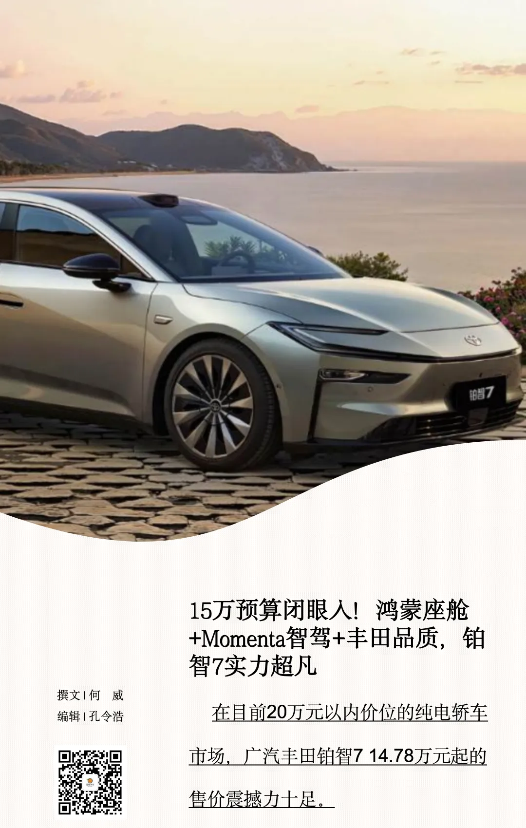 2026年的春天,当行业还在探讨中国车市的内卷和价格大战时,广汽丰田却带着铂智7以一种“掀桌子”的方式杀入了主流纯电轿车市场。铂智7不仅仅只是一款车长超5.1米,轴距超3米的中大型纯电轿车;而是一款将智能预瞄双腔空悬、激光雷达+Momenta高阶智驾辅助以及华为鸿蒙座舱5.0系统硬生生塞入20万元以内价位的“王炸级”纯电轿车。如果在铂智7推出前,你还在考虑20万元购车预算该选择哪款B级轿车。在如今铂智7推出之后,答案或许只剩一个。