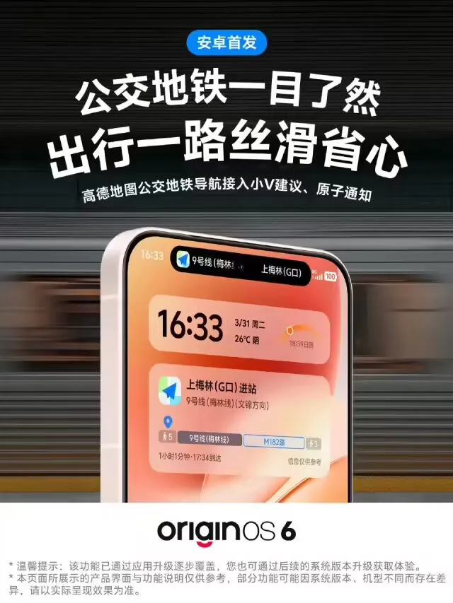 就在不久前的3月中旬,vivo宣布“驾车导航”上岛,OriginOS 6的原子通知功能新增支持高德驾车实时导航信息显示。