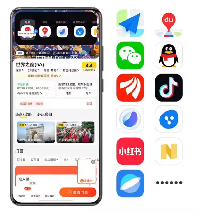 骑行 / 步行导航:高德地图、百度地图打车信息:高德地图、百度地图、滴滴出行、支付宝-高德打车小程序航班信息:航旅纵横火车信息:国铁吉讯外卖信息:饿了么、支付宝-饿了么小程序医疗挂号:支付宝-挂号小程序互传换机:互传短信验证码:短信天气预警:天气开启录音:录音机吃药提醒:健康运动记录:健康健康守护:健康使用设备文件传输:办公套件应用下载:应用商店蓝牙传输:系统蓝牙打印服务:系统打印专注模式:专注模式恢复与备份:系统恢复与备份后台通话:电话与联系人计时器 / 秒表:闹钟时钟对讲服务:对讲机