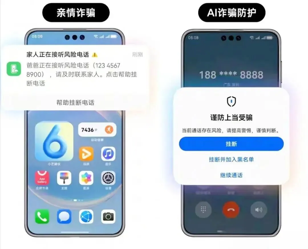 新增的AI智能防诈功能,覆盖通话、短信、网页、应用四大场景,能精准识别诈骗话术并提前阻断,而不是事后提醒。更实用的是远程守护功能,家人接到可疑来电时,你的手机会同步收到提醒,还能远程挂断风险电话,实现全家共同防护。