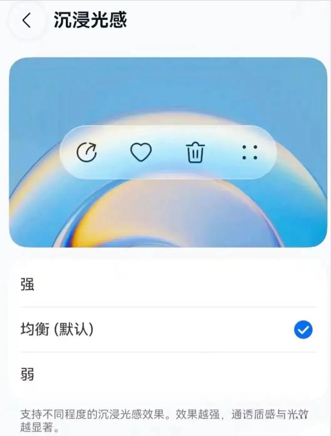 为了适配不同机型的性能,SP52还提供了强、均衡、弱三档调节模式。强档适合新旗舰,连续使用2小时仅比均衡档多耗电3%;均衡档兼顾效果与续航,适配绝大多数机型;弱档简化动效,优先保障续航,适合老机型或低电量场景。
