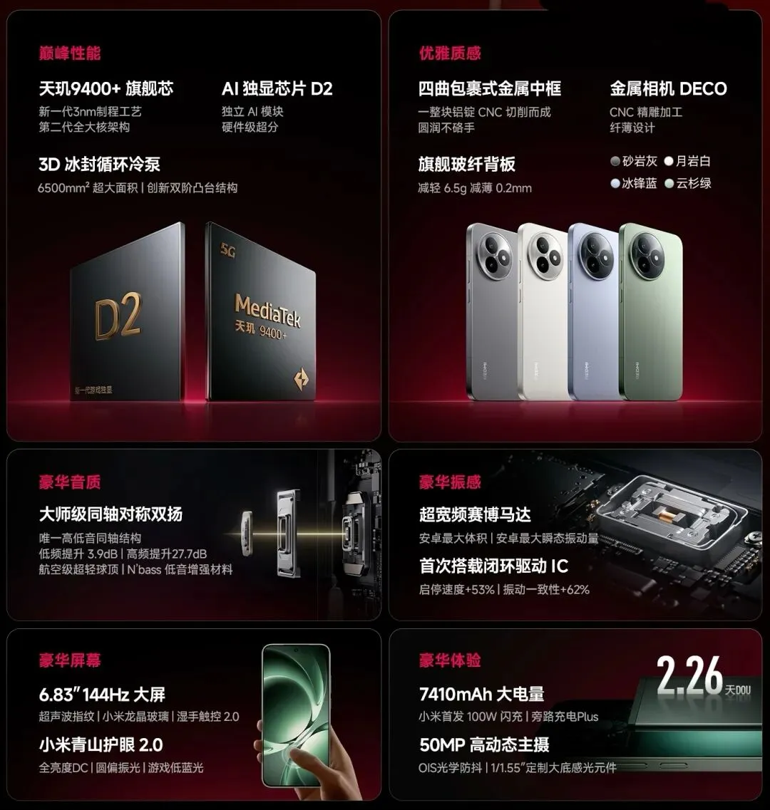 排名第九的是红米K80至尊版,16GB+256GB到手价2197元,核心卖点大师级对称双扬和超宽频赛博马达,还会有天玑9400+和7410毫安时电池。该机的其他配置也很给力,比如6.83英寸144Hz小米青山护眼屏,金属中框和超声波指纹识别,还有满级防尘防水和光影猎人800旗舰主摄等等。如果你追求音频和触感的话,红米K80至尊版依旧是第一梯队,16GB+512GB版到手价2450元,综合体验略逊于红米Turbo5 Max。