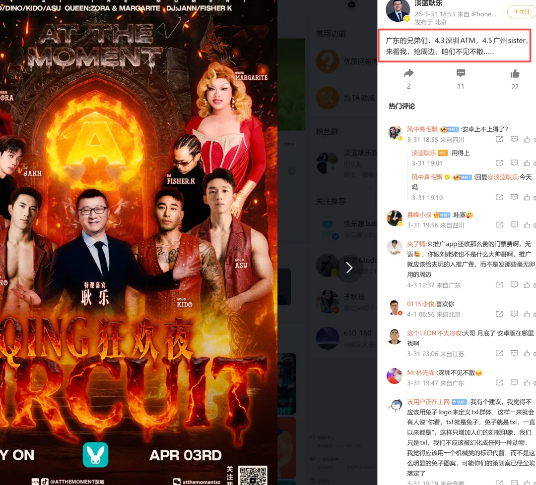 我已经用上vivo x300ultra 了,虽然我很喜欢张弦,张弦很喜欢oppo,但是我更喜欢vivo,因为vivo里只有1个o。作为一个安卓妹,我想问问耿乐,你的小青安卓版还上线不上线?Qing(青出于蓝) 是前 Blued 创始人耿乐(本名马保力) 于 2026 年推出的全新社交 App,主打真实、清爽、高隐私的社群社交。截至 2026 年 4 月初,仅上线 iOS 版,安卓版尚未发布。但作为曾经淡蓝网的大佬,耿乐当然没有闲着,为了宣传小青也是花招迭出👇甚至搬出了耶斯莫拉前来相助,随着衣服的穿多穿少,我也不知道耿乐是胖了还是瘦了,反正是用身外之人拉尽了眼球👇如果要给中国垂直社交圈写一部“江湖列传”,那肯定有耿乐。