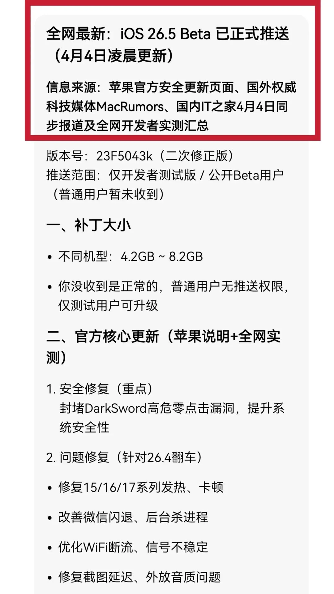 26.4 的问题被官方测试数据“实锤确认”。