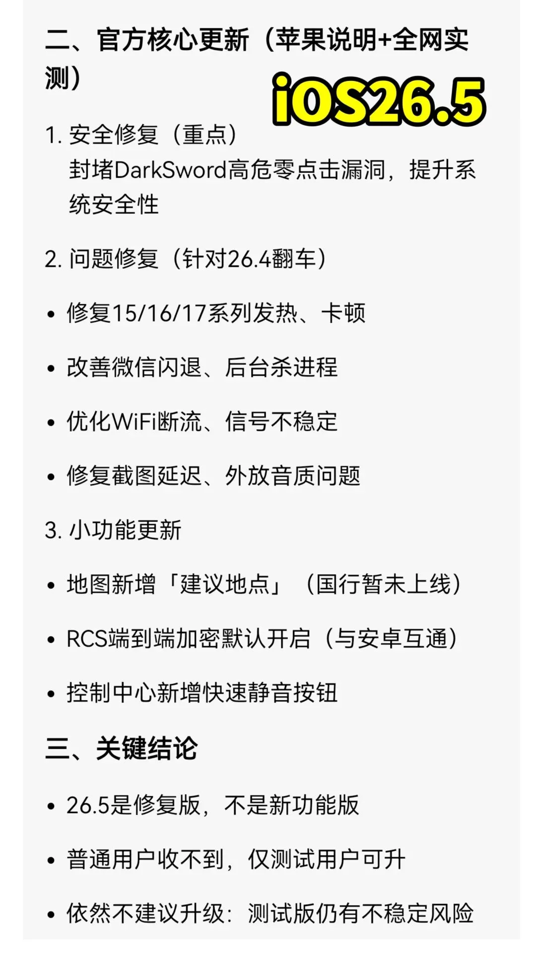 👉 等 iOS 26.5 正式版推送后再升级,这样最安全、最稳。