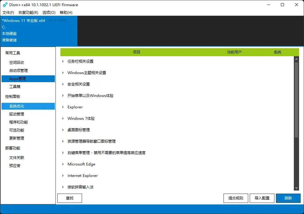 Dism++ 不仅可以帮我们快捷方便地自定义调整系统设置,还具备强大的系统维护功能,现在不少 PE 系统也整合了这个软件,所以是一款不可多得的系统管理利器。