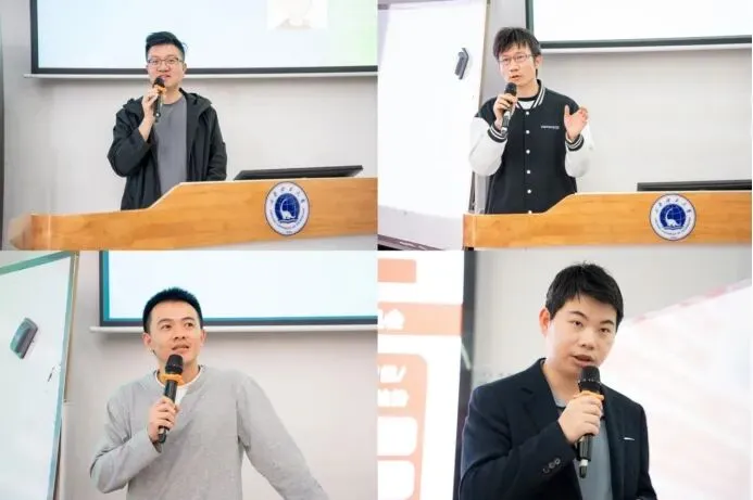 随后,四位开源鸿蒙技术专家带来前沿技术分享。刘果以《开源鸿蒙技术生态全景与学生成长路径》为题,系统解读开源鸿蒙社区治理、技术架构与生态进展,技术课题、代码贡献、应用及设备开发、技术竞赛等成长路径,为广大学子明确职业发展方向与成长着力点。为学子指明职业发展方向。唐佐林回溯《开源鸿蒙开发的前世今生》,详解开源鸿蒙从起源到生态成熟的发展历程,分享全场景应用落地实践与个人开发者成长机遇。胡晓明聚焦《仓颉语言-仓颉中心仓》,深入介绍仓颉语言高性能、强安全、智能化核心特性,以及仓颉中心仓在依赖管理、版本控制、生态协同等方面的技术突破与应用价值。连志安带来《开源鸿蒙与人工智能的结合案例》,分享开源鸿蒙在具身智能、端云协同、AI原生应用等领域的创新实践,展现操作系统与人工智能深度融合的广阔前景。讲座环节干货满满,现场师生认真聆听、积极互动,在技术交流中深化对开源鸿蒙、仓颉语言、AI融合开发的认知,充分感受国产开源操作系统的技术魅力与生态潜力。