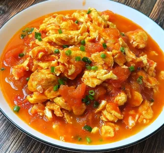 胡萝卜蒸肉饼、番茄炒鸡蛋、米饭