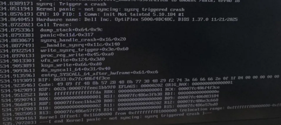 2)安装完成后系统启动一直在内核启动界面打日志,且最后--[ end Kernel panic - not syncing:sysrq triggered crash ]--,为什么进不去桌面??