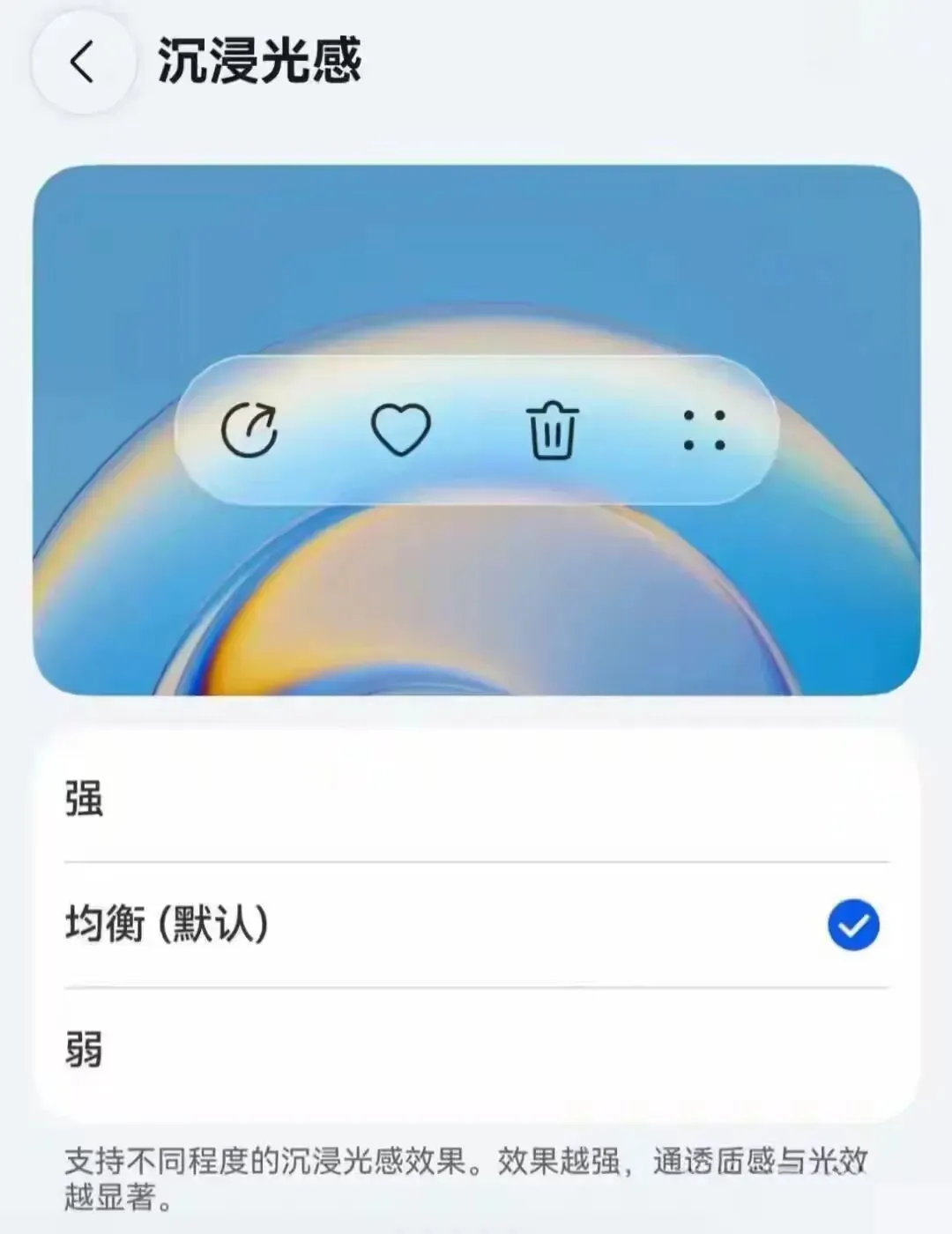更贴心的是,通透度、光感强度都支持自定义,在「设置—桌面和个性化」里就能自由调节,交互更灵动。