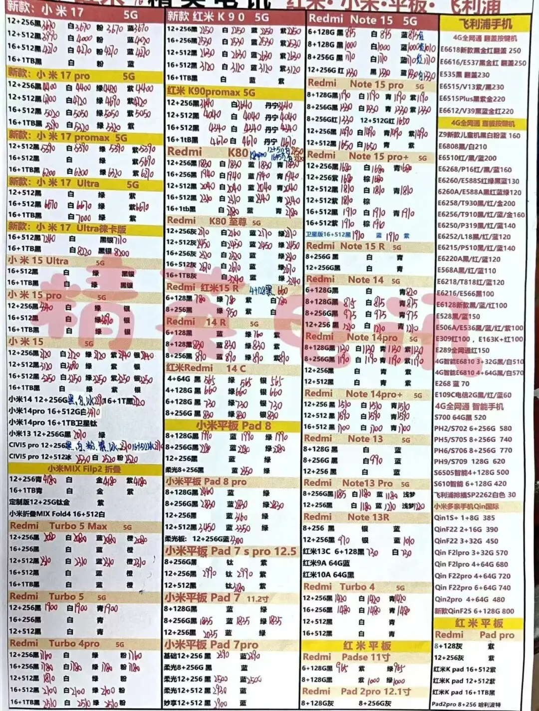 以下报价都是深圳华强北手机批发市场当天的最新批发价格(不含税),报价是我们的批发底价,零售拿货价格需加20~100元不等,京东包邮(量大价格可谈)