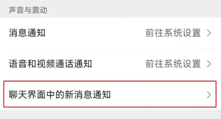 该选项可调整聊天界面中的新消息通知是否有声音、振动提示。