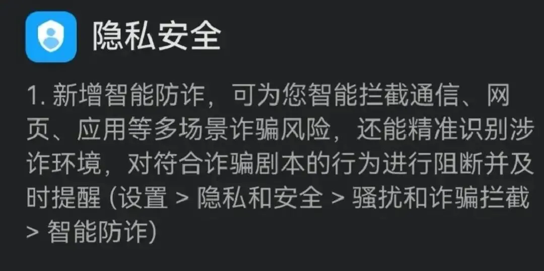 一个全方位的智能防诈能力,配合一个更透明的权限管理。