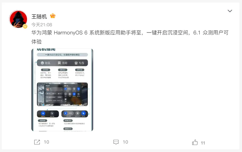 最后再提醒一下,目前只有 HarmonyOS 6.1 众测用户能体验新版应用助手,想尝鲜的可以去华为开发者联盟申请众测资格;非众测用户不用急,正式版应该很快就会推送,到时候直接在系统设置里更新应用助手就行。总的来说,这次更新算是鸿蒙 6 系统的一次实用补强,不管是游戏党还是日常用户,都值得期待一下。