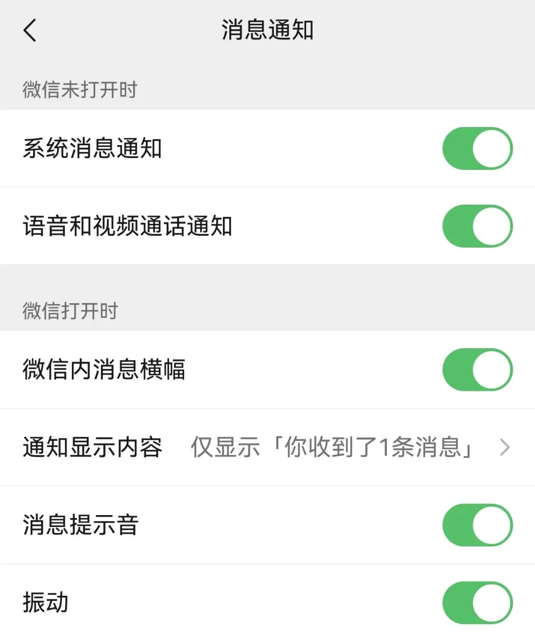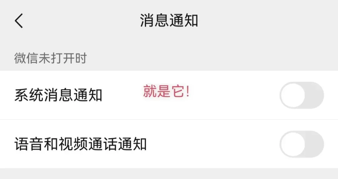 微信自己的设置里系统消息通知默认是关闭的!!!