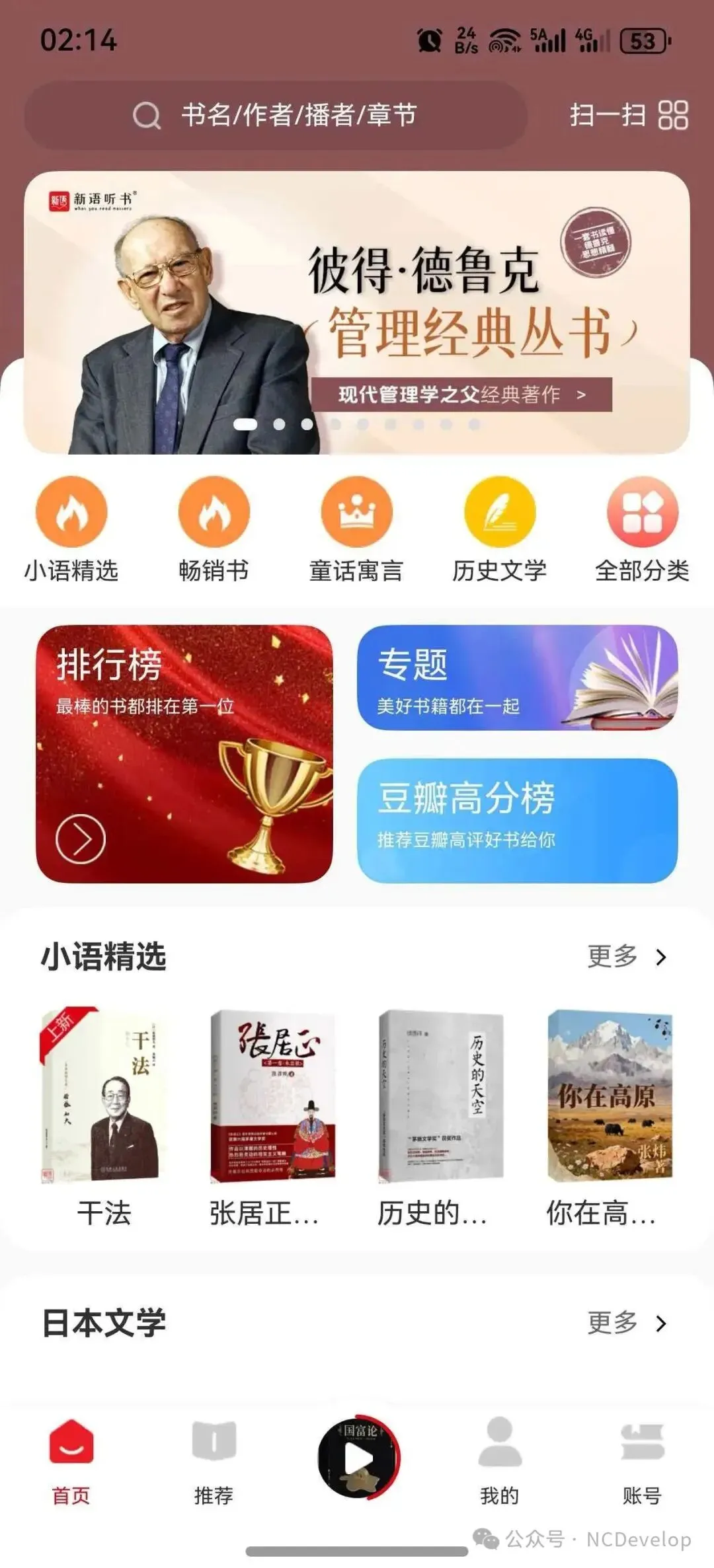 平台拥有5 万 + 小时、18 万集优质有声内容,涵盖中外名著、获奖名篇、党建书籍、历史文学、科幻世界等 30 + 热门分类,无论偏爱严肃文学、历史社科,还是钟情科幻悬疑、经管励志,都能找到值得反复聆听的经典佳作。