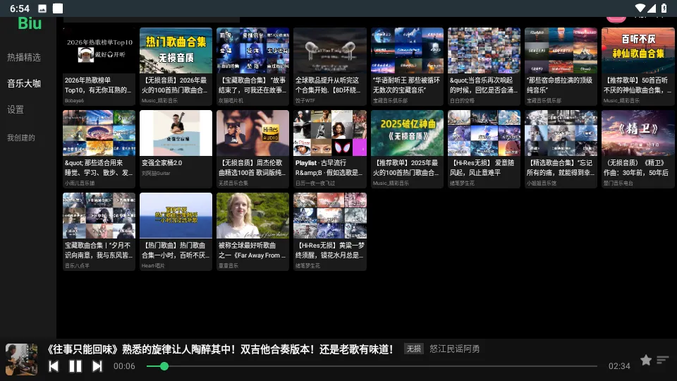 支持平板、汽车、手机,把β站的海量音乐资源,变成一个干净、好用的音乐App——βiu音乐播放器