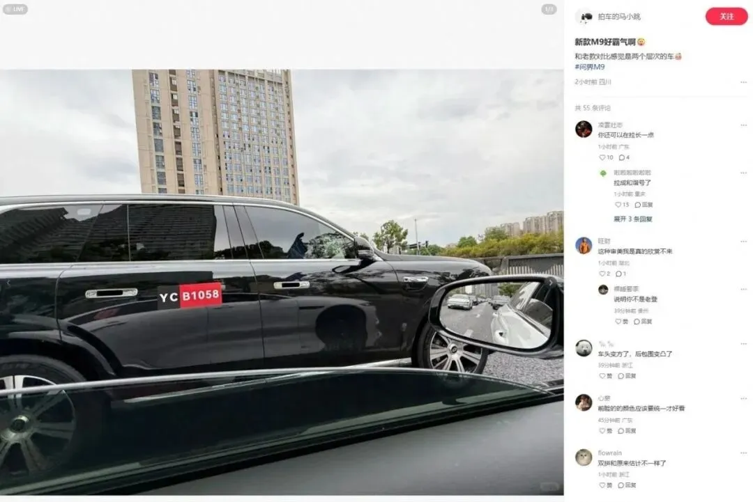 4 月 6 日消息,鸿蒙智行 2026 款问界 M9 无伪装实车今日再曝。小红书博主 @拍车的马小跳 今日分享了新车路测的实况 Live 图,展示了新车更多角度的外观。