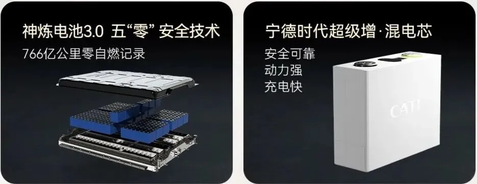 电池安全方面,华境S搭载宁德时代电芯的"神炼电池",实现"0自燃、0扩散、0泄漏、0进水、0侵入"的五零安全防护。单电芯可承受1500J能量冲击,整包满电状态下连续两次承受1500J撞击仍无冒烟、不起火、不爆炸,远超新国标要求。
