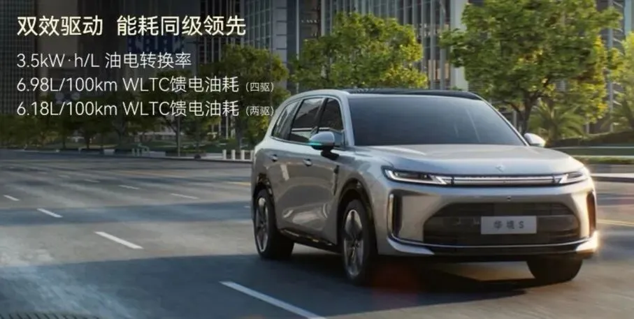 CLTC工况下,两驱版纯电续航最高255km,四驱版为235km,综合续航里程超过1000km。搭载宁德时代电芯,支持3.5C快充,电机最高效率97.5%,电控最高效率98.8%,混动发动机热效率达43.2%,馈电油耗为6.98L/100km。