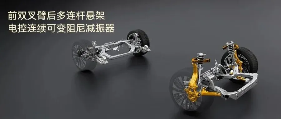 底盘采用前双叉臂、后多连杆结构,配备马瑞利CDC电控悬架及摩提马帝专业调校,响应时间仅10ms。车辆还具备防晕车功能,通过驱动、制动与悬架协同控制,使俯仰角变化降低21%、仰角降低63%。