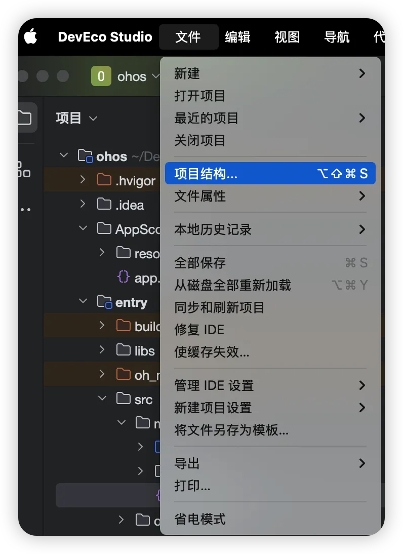 特别关注 ohos/ 目录,这是鸿蒙平台特有的配置和代码。