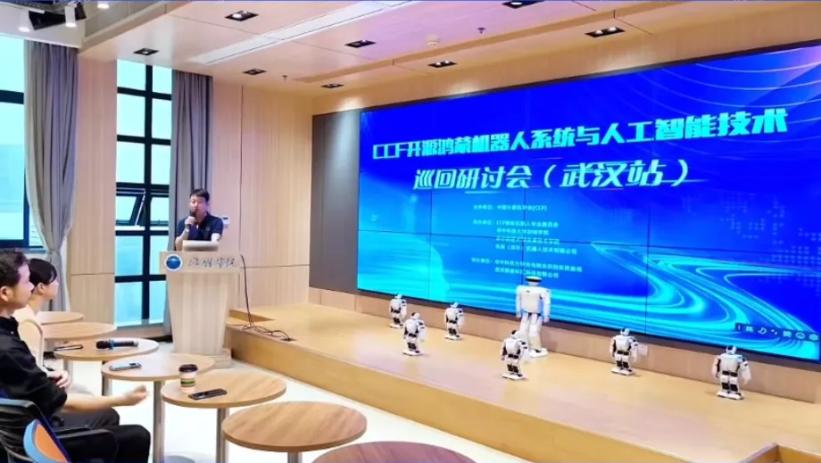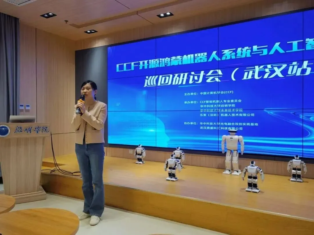 5月11日,2024年CCF开源鸿蒙机器人系统与人工智能技术巡回研讨会(武汉站)在华中科技大学启明学院12楼路演厅成功召开。本次研讨会由中国计算机学会CCF主办,华中科技大学未来技术学院、华中科技大学启明学院、乐聚(深圳)机器人技术有限公司承办,由华中科技大学光电融合双创实践基地、武汉鼎盛科汇科技有限公司协办。此次研讨会吸引了来自省内32所高校的近百名师生参会,共同探讨开源鸿蒙机器人系统与人工智能技术的发展与应用。活动由乐聚(深圳)机器人技术有限公司活动负责人孙冬主持,为与会者带来了一场精彩纷呈的技术盛宴。通过这次研讨会,参会师生不仅拓宽了视野,也激发了对前沿技术的浓厚兴趣。希望这样的交流活动能够持续举办,为推动科技进步与产业发展贡献更多智慧与力量。