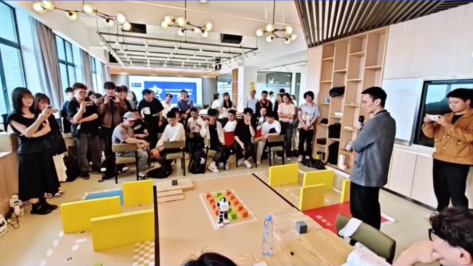 中国机器人及人工智能大赛培训活动现场气氛热烈,同学们积极参与互动。