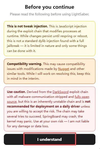 用Safari浏览器打开网址(评论区自取),点击i understand
