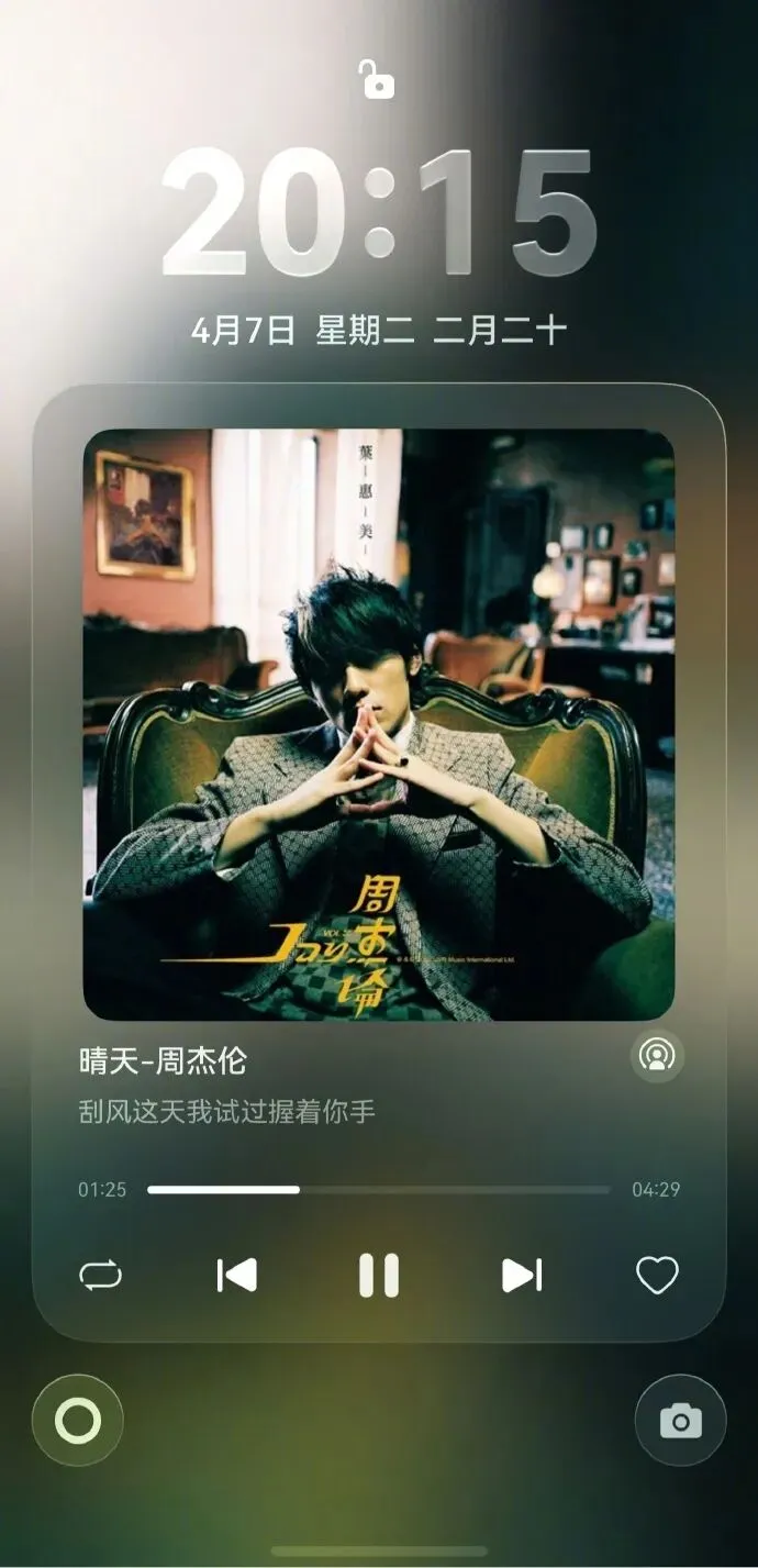这次更新后,问题得到了彻底解决。实测开启 “强” 档光感效果,锁屏播控中心重新恢复了清晰的卡片边界和层次感。半透明的毛玻璃质感边框,配合灵动的光影流动,和整个锁屏界面的氛围完美融合。无论是看歌词、切歌还是调节音量,界面都干净利落,视觉上舒服多了。可以说,这个困扰用户许久的 “小毛病”,终于被华为根治了。
