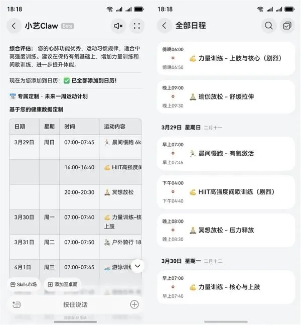 平时健身最头疼的就是做计划、记数据,有了小艺 Claw,这些事全不用自己管!它能和华为手表、手环等穿戴设备无缝联动,步数、心率、热量消耗这些数据自动同步,不用手动录入。