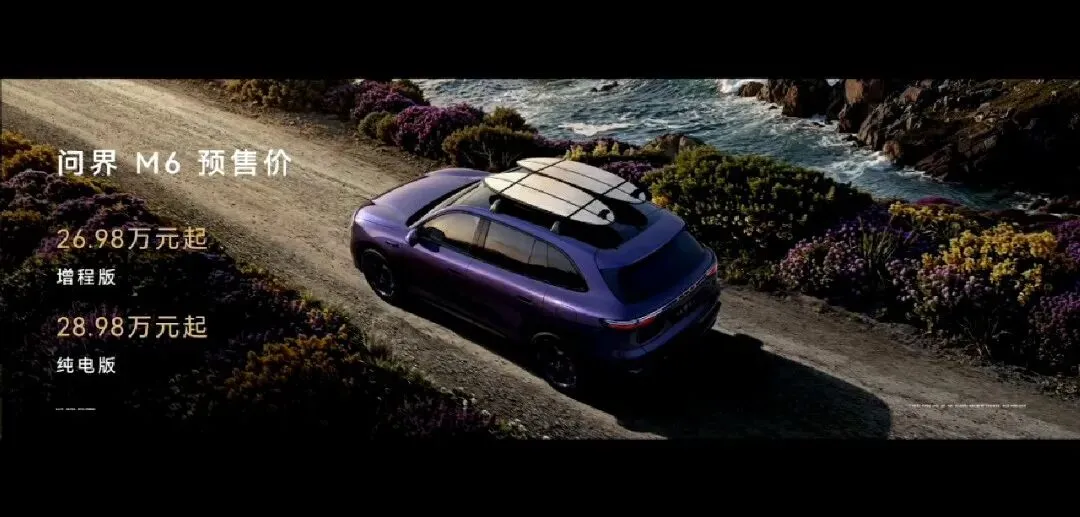全新问界 M6,中大型五座 SUV,全系标配 896 线双光路图像级激光雷达。