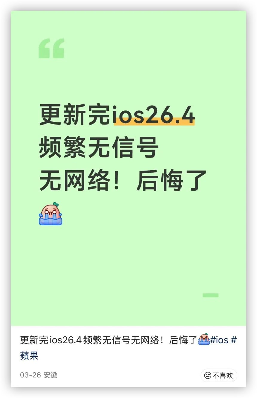 首先说一下截至 2026 年 4 月 8 日,iOS 26.4.1 尚未正式推送。目前官方仅确认该版本处于最终测试阶段,预计于 4 月 10 日至 15 日 左右发布。