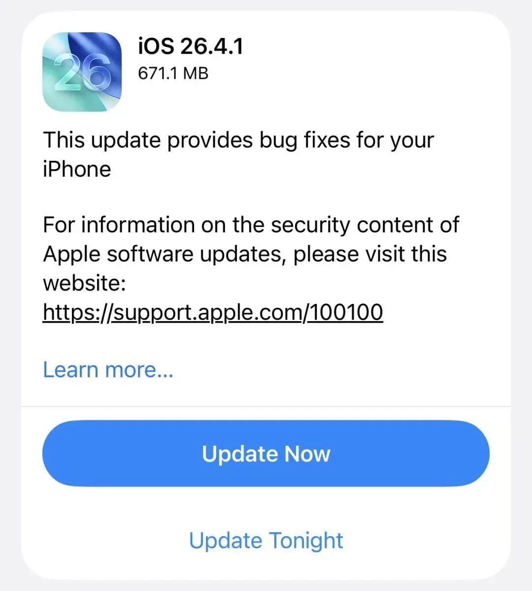 * iOS 26.4.1 (23E254)