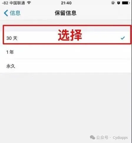 实际上苹果是具有定时清理功能的。打开苹果手机“设置”,然后找到“信息”,你会看到“30天”、“1年”、“永久”三个选项,可以直接设置历史记录设置为30天清理,很多人的手机里面自动保留上百条甚至是上千条的短信,而且大部分是垃圾广告短信,内存都去哪儿了?