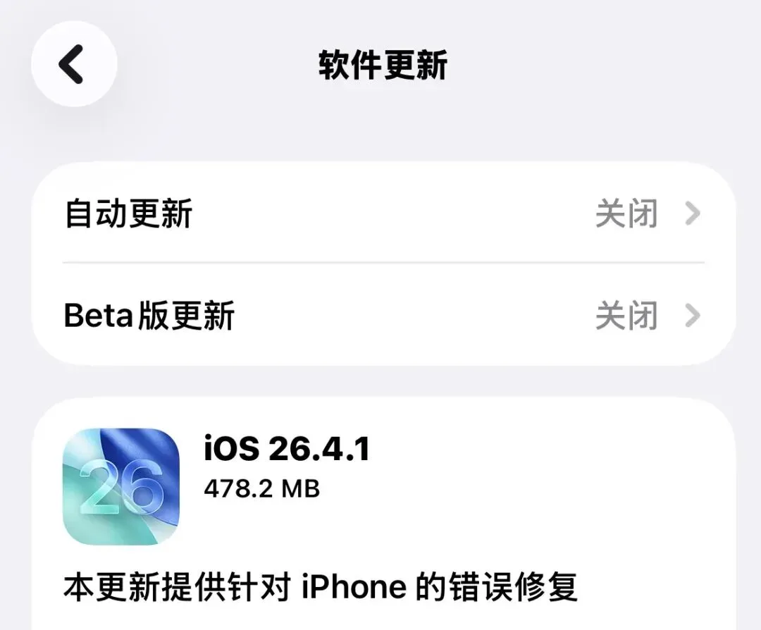 >ios26.4.1正式版发布,针对iphone进行错误修复