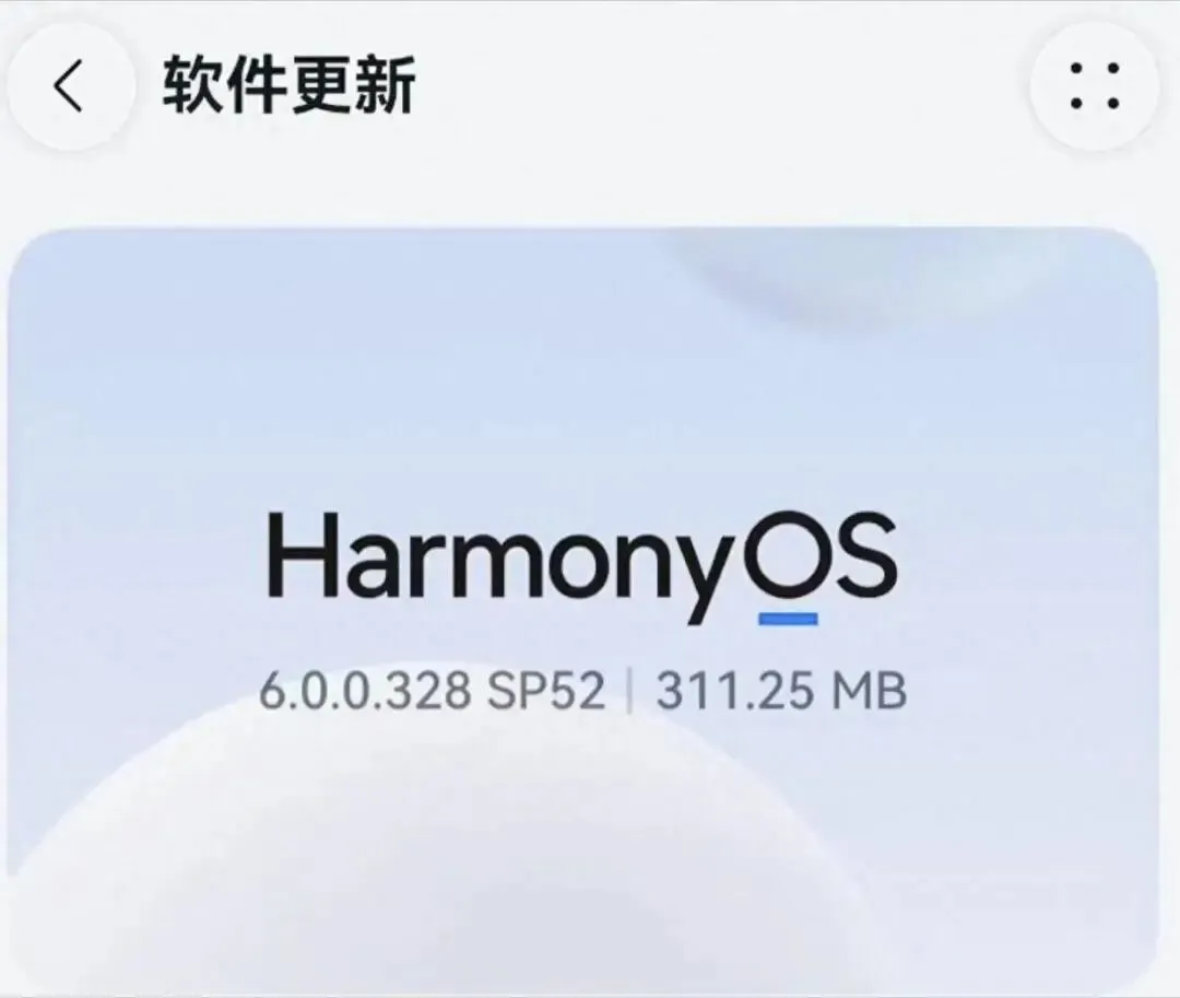 我凑近一看,版本号是HarmonyOS 6.0.0.328 SP52,包不大,就311MB左右。