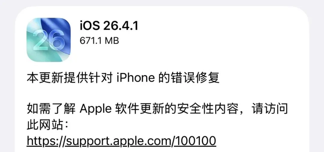 >刚刚!iOS 26.4.1 新固件,紧急更新