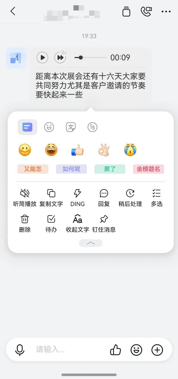 这次鸿蒙版钉钉更新支持复制语音转文字了,开会时收到的长语音消息,转成文字后就能复制出来,处理精细任务需求,省时又省力。